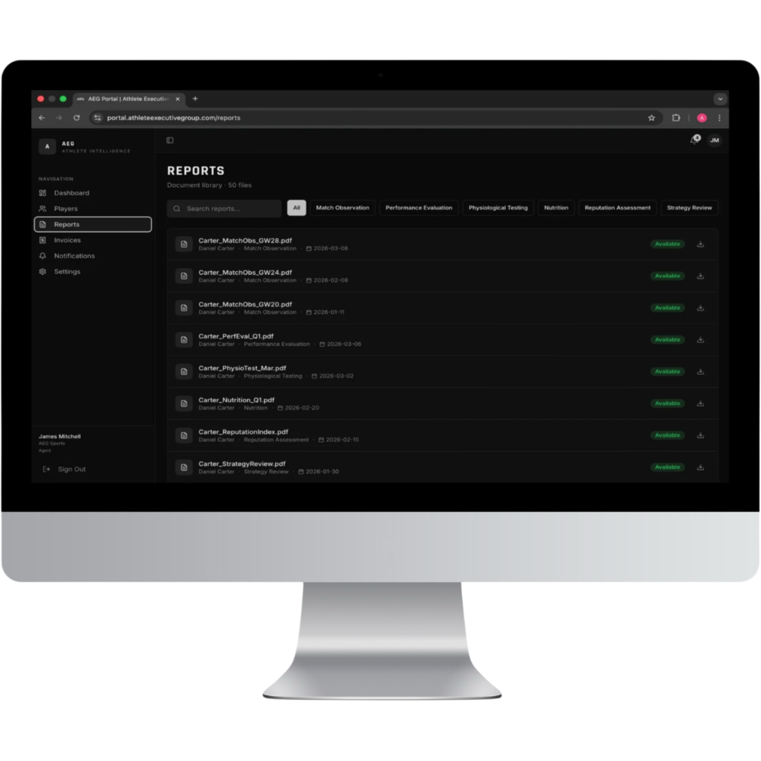 AEG works alongside agents and athletes to collect independent performance data and organise it into structured reports.