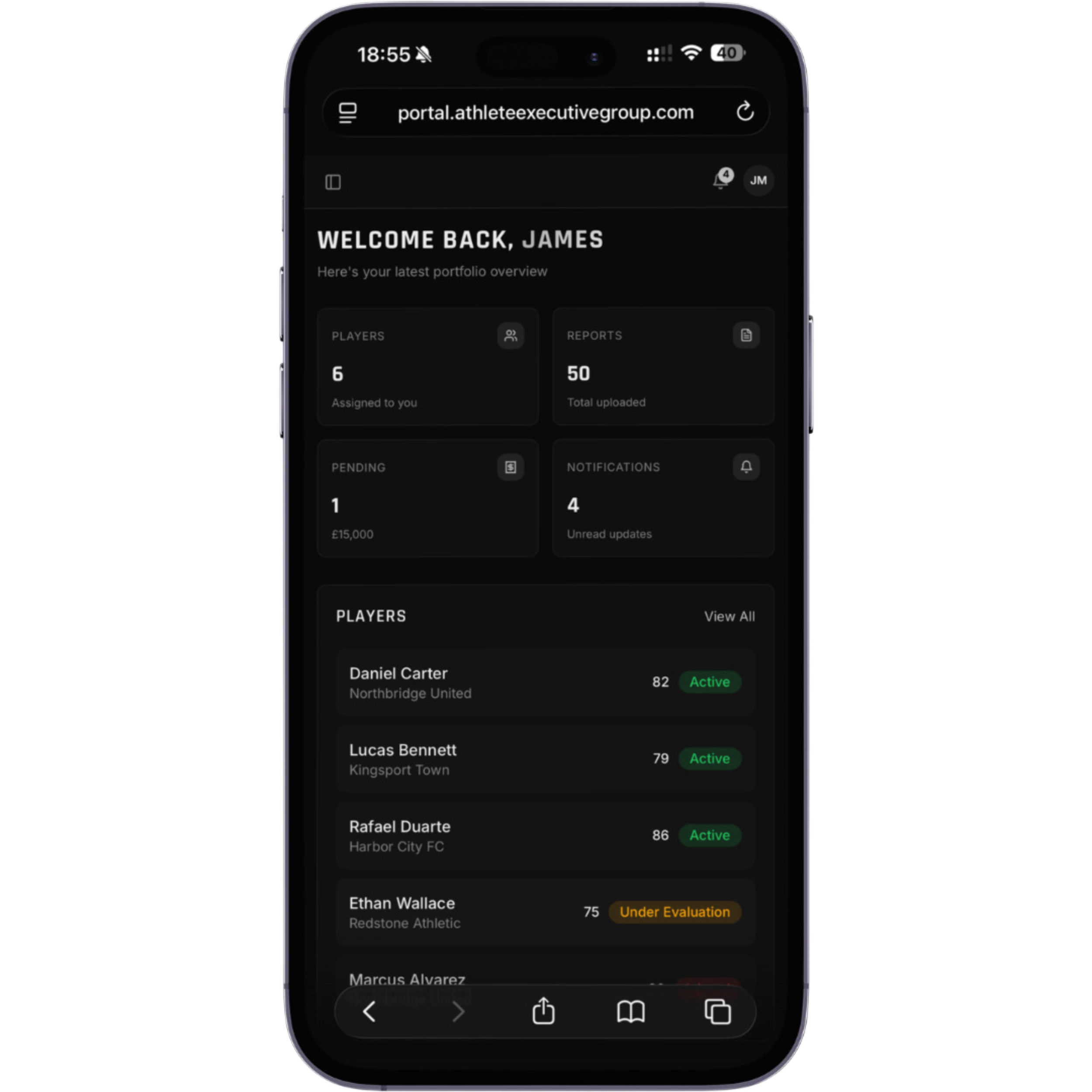 We assess players through match observations, performance testing and structured evaluations, then deliver clear reports through the AEG Portal so agents can monitor development, reduce risk and protect athlete value.