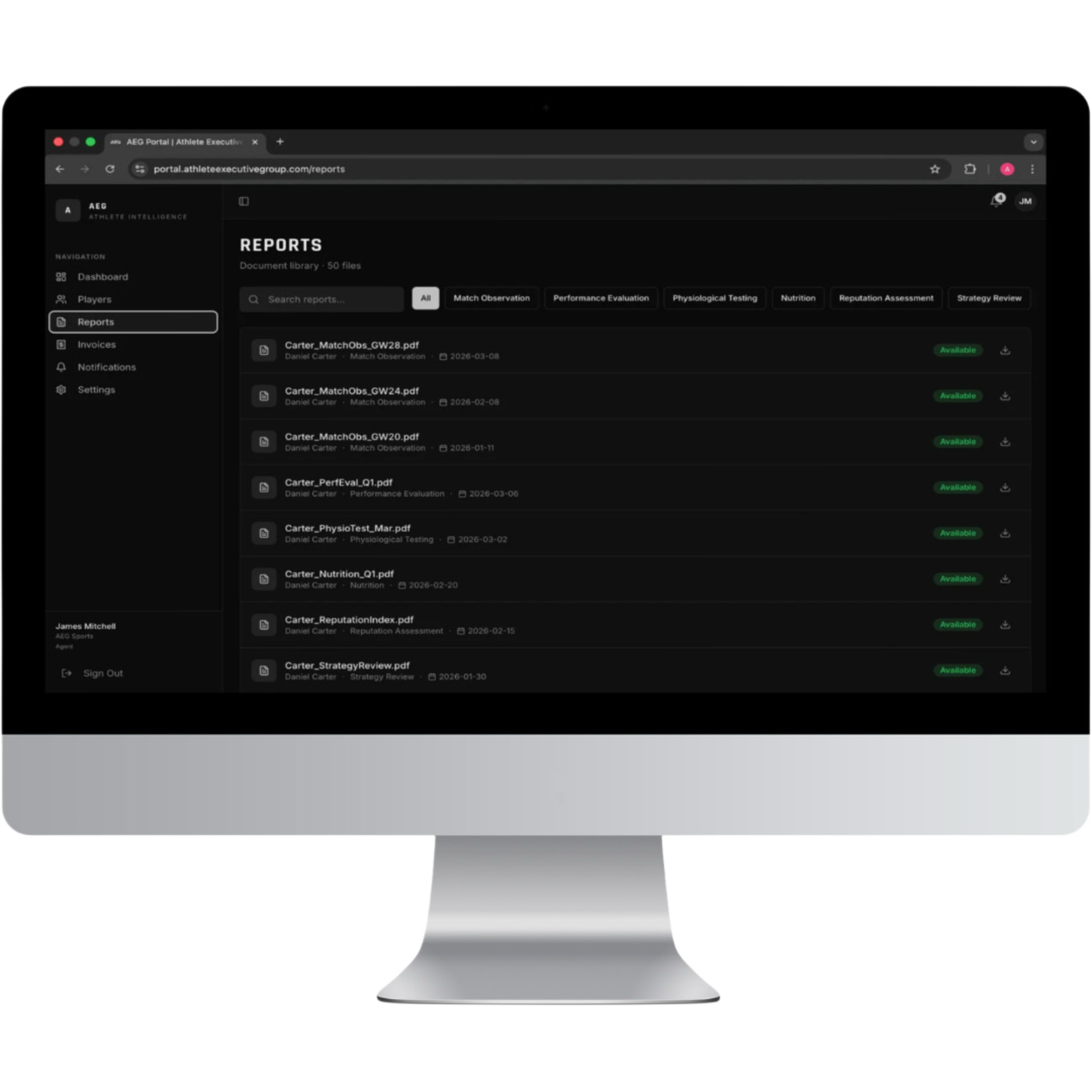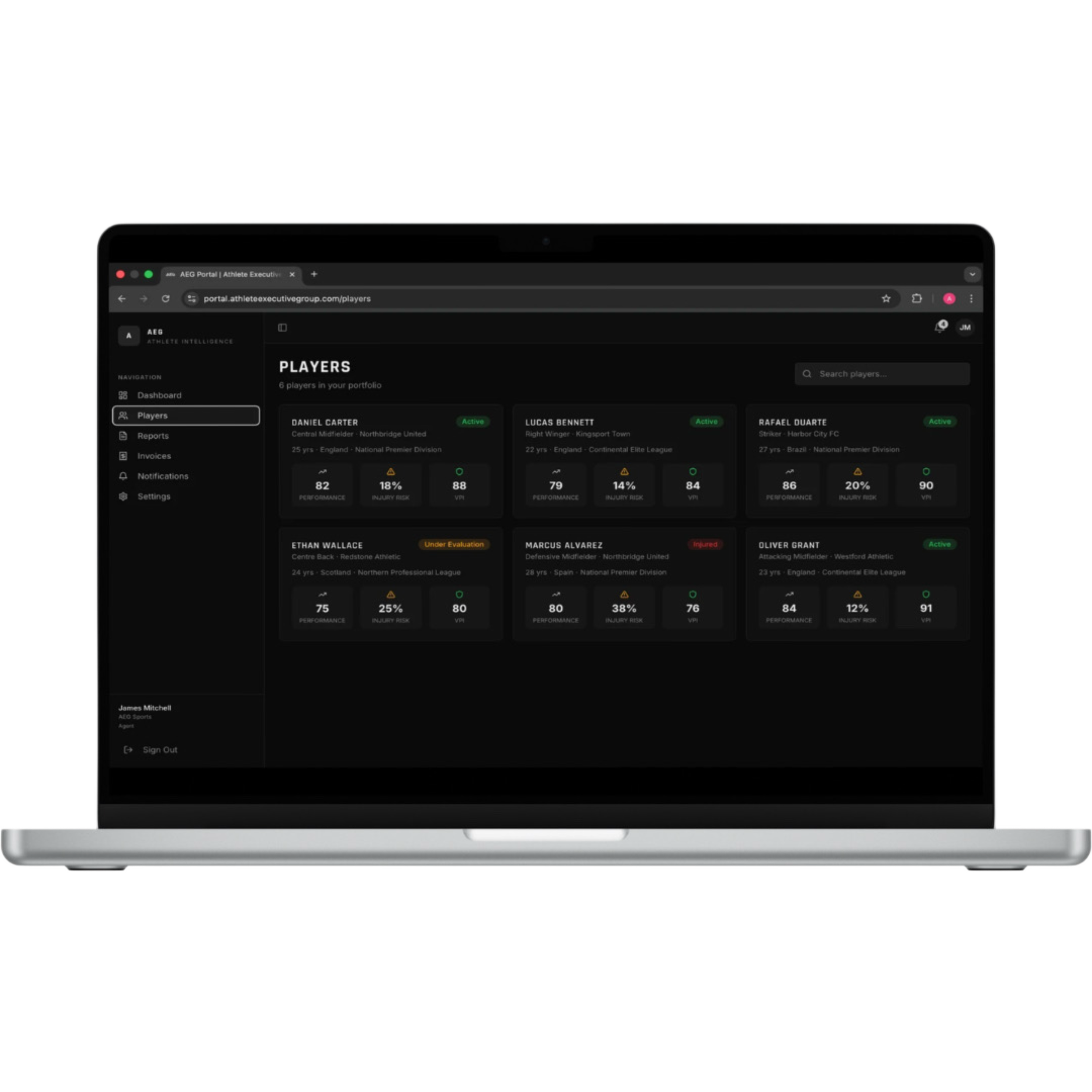 Using the information gathered from match observations and testing, AEG produces structured performance reviews. This allows agents to understand not only how a player is performing now, but also how their performance may develop over time.